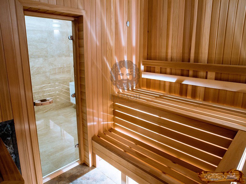 Освещение в парной должно быть слабым, что будет создавать расслабленную атмосферу и настрой на отдых. В качестве системы освещения лучше использовать светодиодные приборы, которые работают при малой силе тока, что, прежде всего, говорит о безопасности таких источников света.