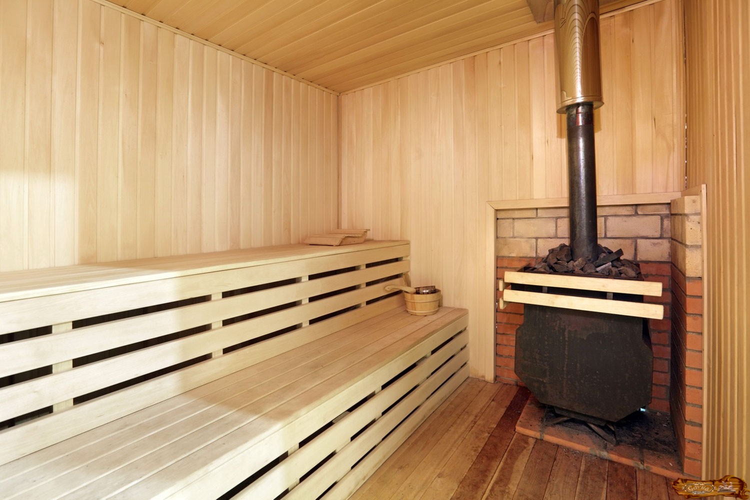 В русской бане печь, напротив, должна производить как бы туман температурой 150 градусов. Получить такой эффект можно с помощью камней, накалённых не менее чем до 500 градусов, желательно в закрытой большой каменке, устроенной сверху топки.