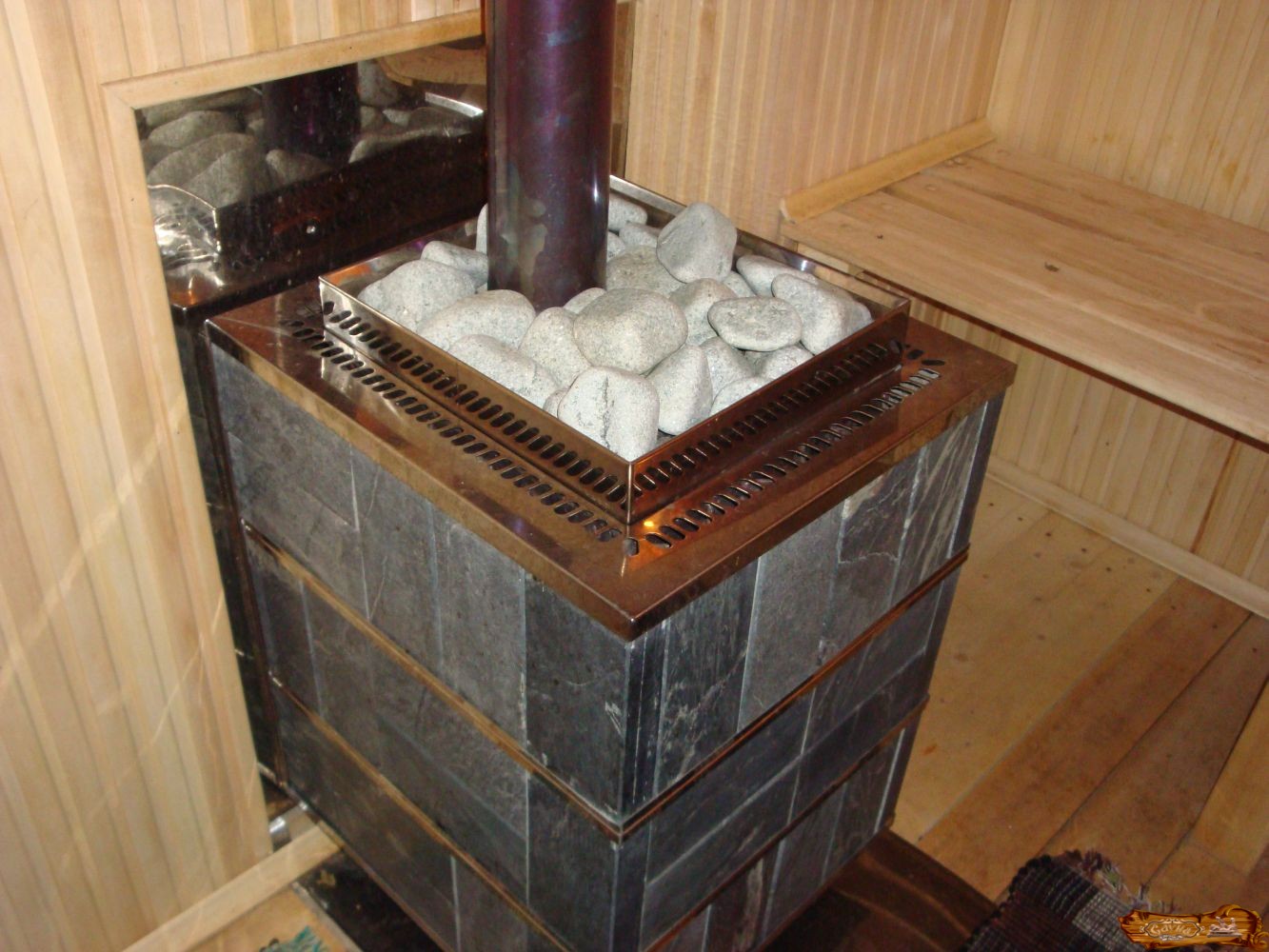 Декоративная отделка вашей печки в бани зависит только от вашего желания, вкуса и размера кошелька.