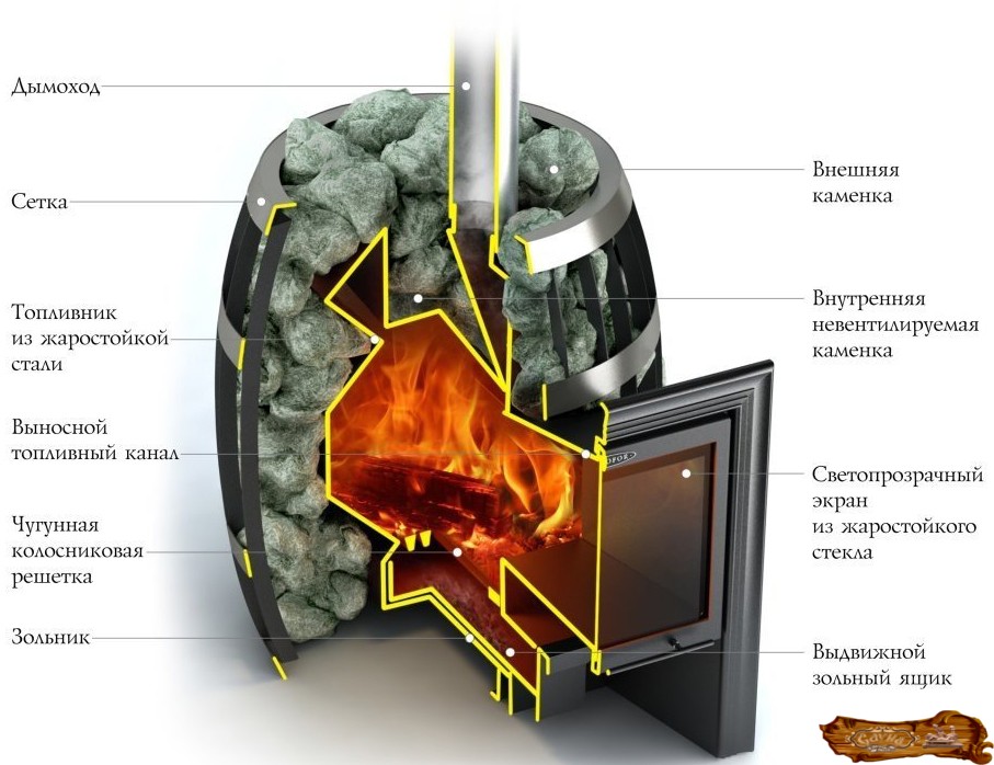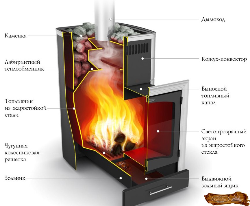 металлические печи с дверцей топки, вынесенной в предбанник или находящейся в парной;