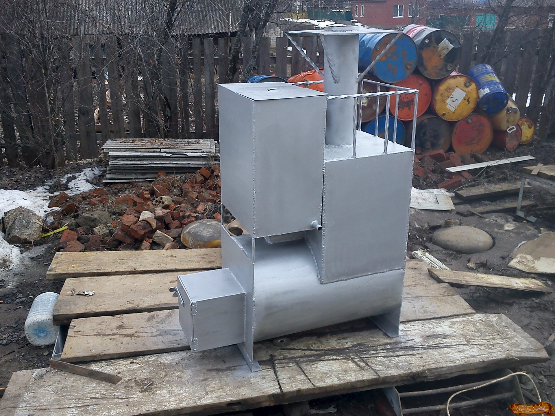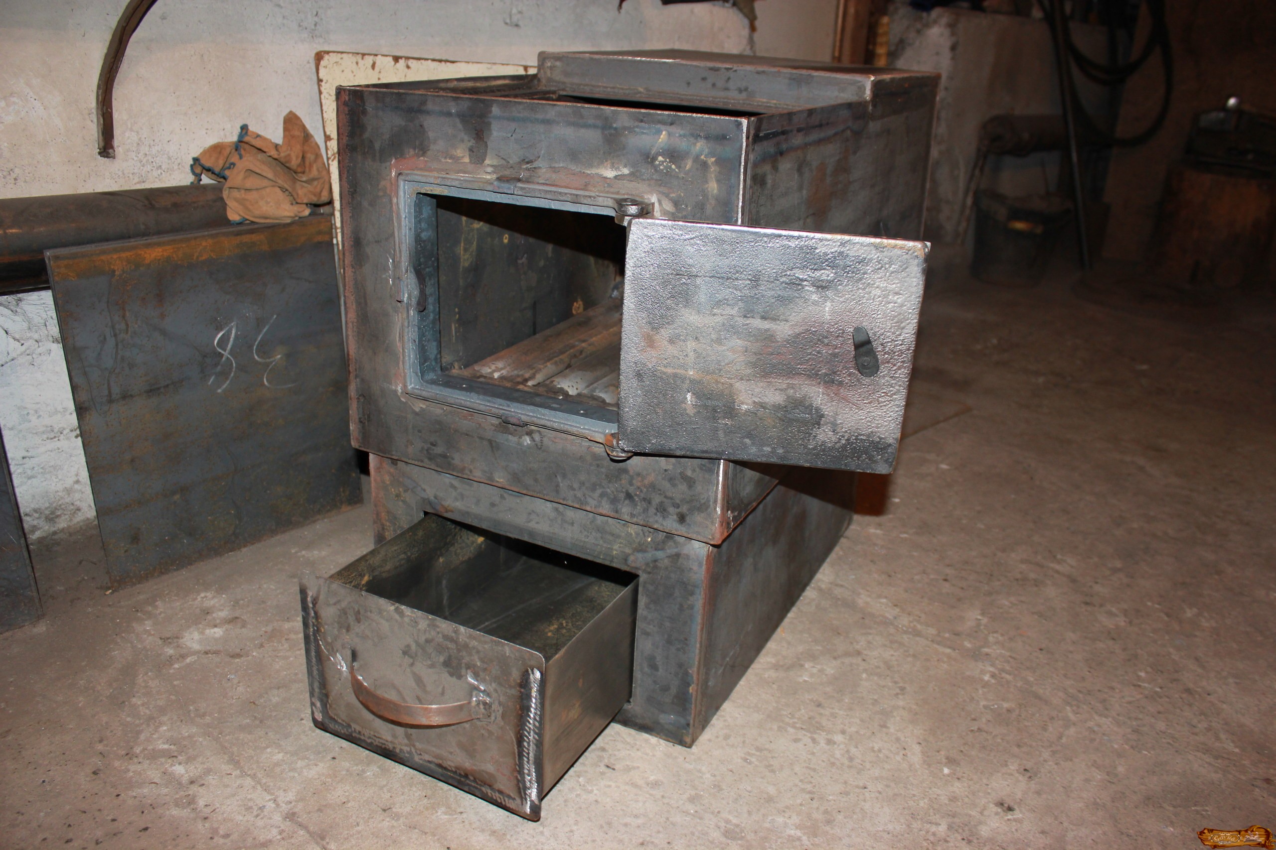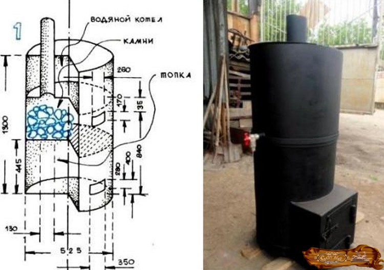 Рассмотрим самые доступные в изготовлении варианты банных печек, выполненных из металла: