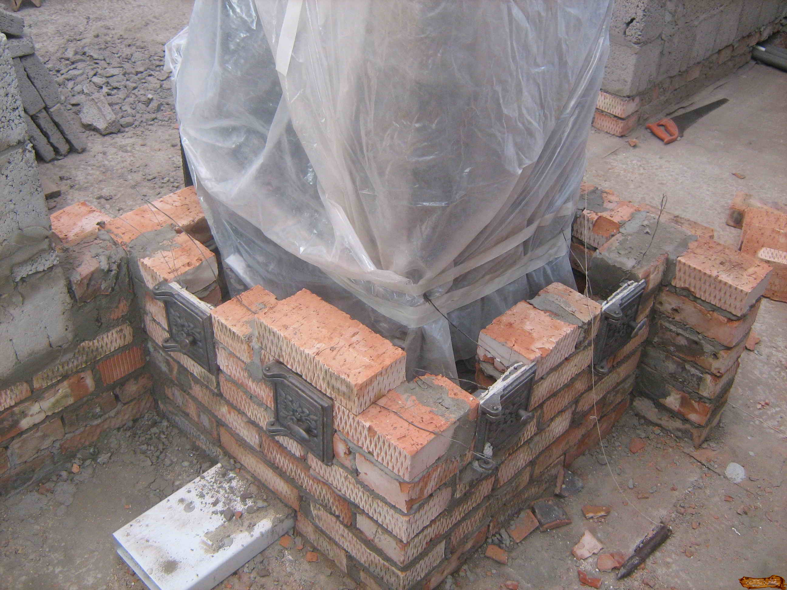 над этим отверстием делается ещё одно маленькое, возле него со всех сторон крепятся болты, на них устанавливаем дверку и закручиваем гайки из латуни (латунь не окисляется);