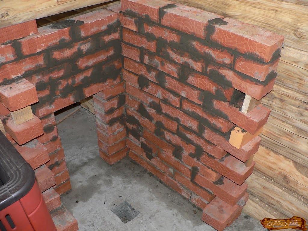Обкладываем топку шамотным (жаропрочным) кирпичом на растворе из шамотного цемента, кладем кирпич на ребро. Толщина кладки зависит от размера кирпича (есть с ребром 3-6см).
