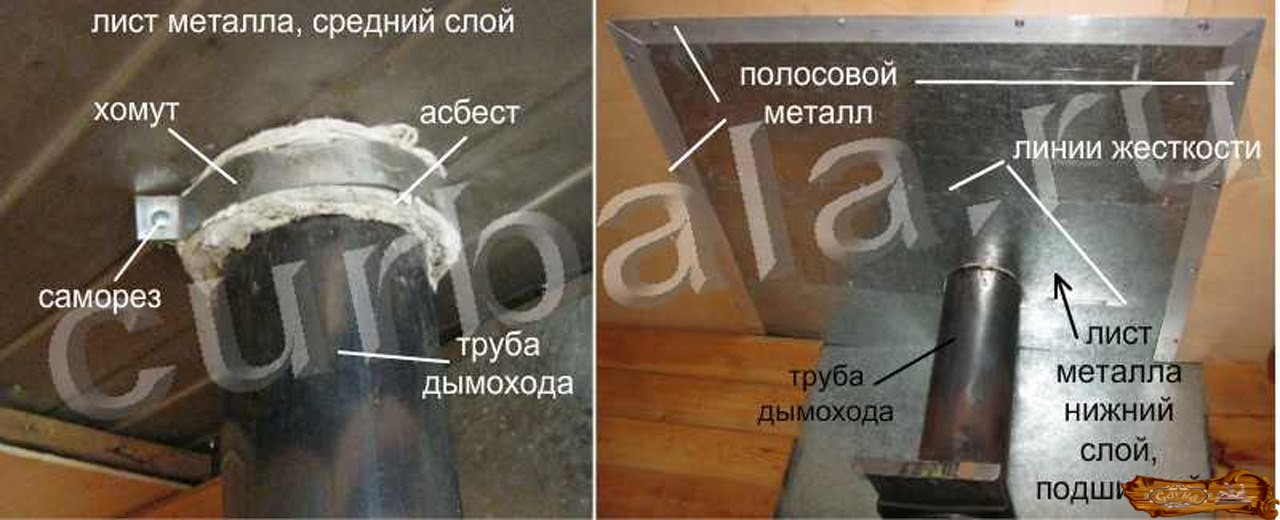 к месту, где будет установлена труба дымохода, привариваем так называемую «юбку»;