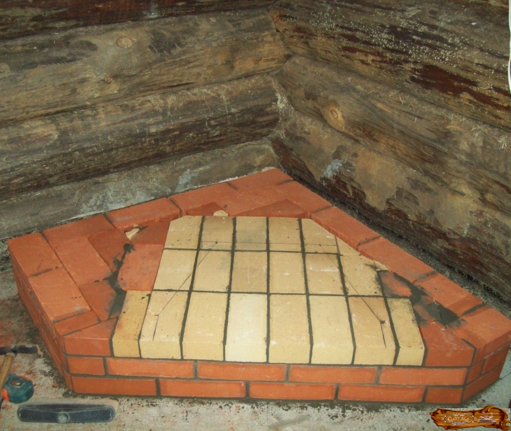 Площадка для установки печи готовится как минимум раза в два больше, чем площадь, занимаемая самой печью, и состоит из нескольких слоев, расположенных снизу вверх: