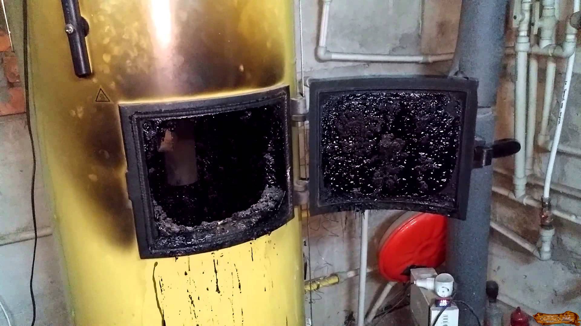 дверцу предварительно обмотаем асбестовой нитью для герметичности, через неё периодически удаляется сажа и копоть;