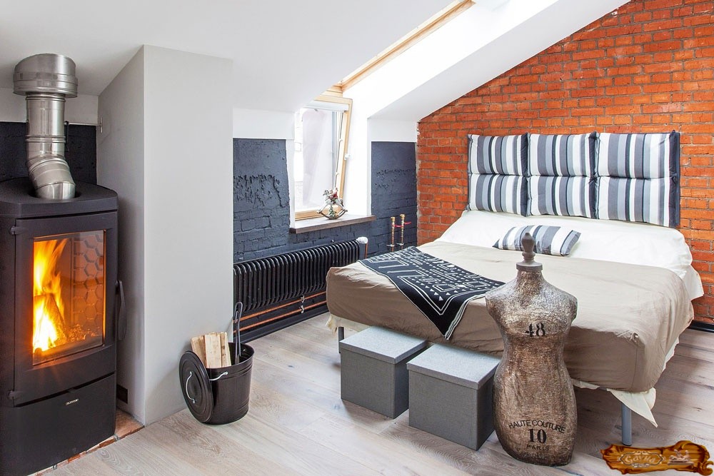 Угловой камин в спальне или компактная пристенная модель не только обогреет помещение, но и внесет нотки романтичности, камерности в атмосферу.