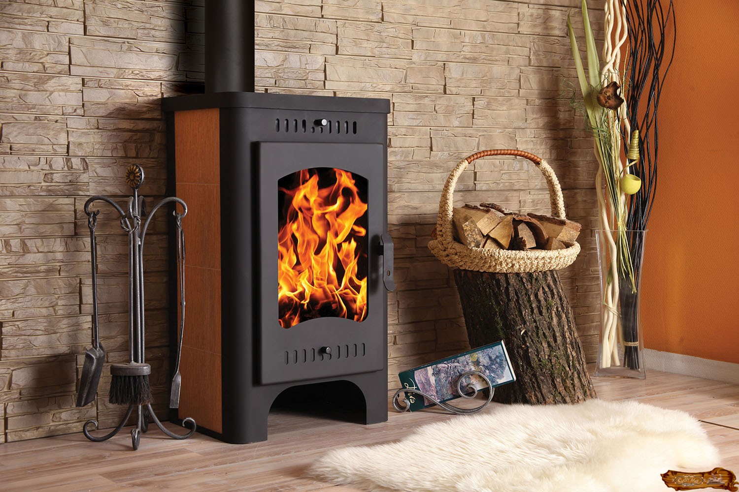 Помимо дров и угля, можно использовать для растопки ветки, остатки дерева, пеллиты (спрессованные опилки, отходы древообрабатывающих предприятий, а также торф, опилки, солома). В целом, чугунные печи-камины отличаются простотой, а потому редко выходят из строя. Они просты в монтаже во многом благодаря входящим в комплект дымоходам. Единственное, требуется обеспечить теплоизоляцию напольного покрытия и стен, с которыми контактирует и вблизи которых устанавливается камин.