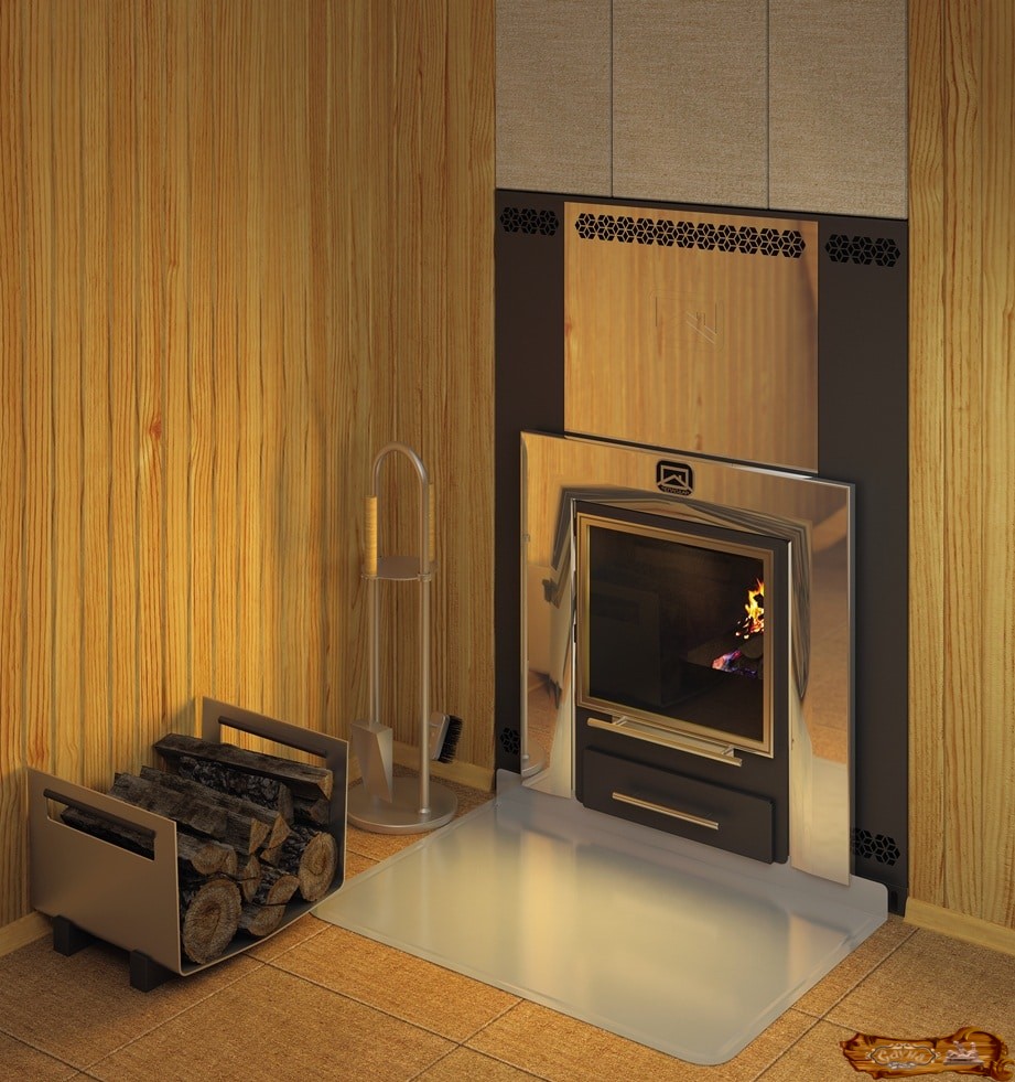 Отличительной особенностью дизайна является стильная стеклянная дверь, облицовка боковых панелей теплоизоляционной плиткой. Стоимость модели – от 17 000 до 20 000 рублей.