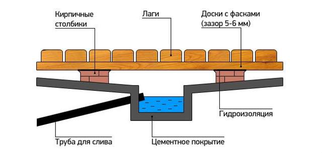 При укладке пола нужно обязательно учитывать угол наклона. Это необходимо для слива воды в канализационную систему. Последнюю можно сделать по упрощенной схеме, которая включает в себя установку подпольных желобов и водоприемников.