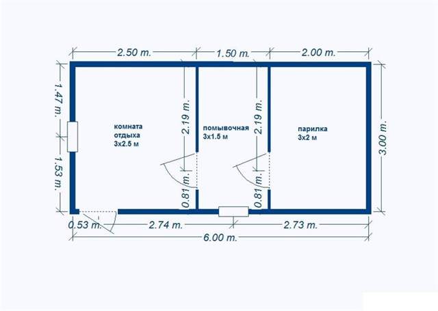 На первом этапе необходимо выбрать оптимальный чертеж бани. При этом нужно заранее определиться, какие помещения будут в здании, их функциональная нагрузка и комфортная площадь.