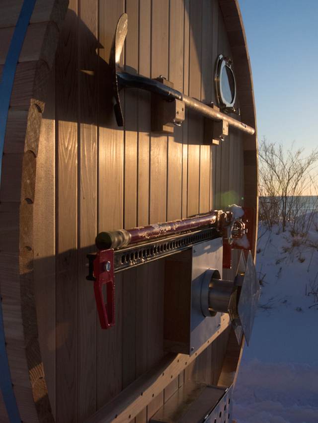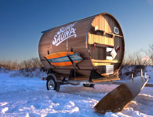 Компактная передвижная сауна рождена из замороженных океанов для того, чтобы серфингисты могли холодной зимой расслабиться в теплом убежище. Деревянная эстетическая сауна в нетипичной форме — идеальное создание для минисауны.