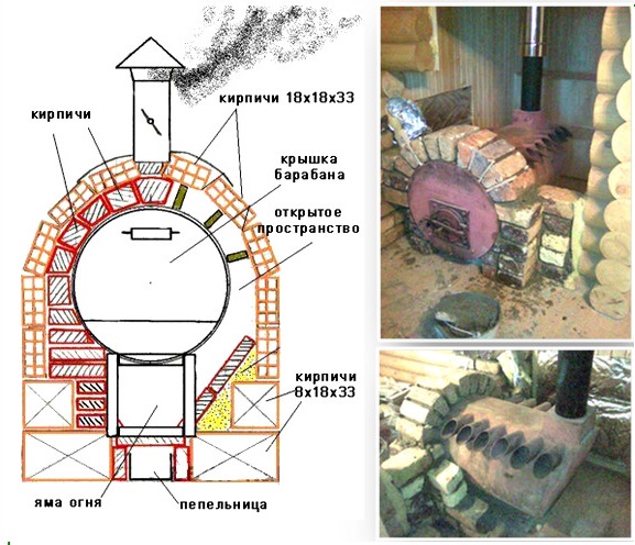 Конструкция комбинированных печей позволяет затапливать её от одного до нескольких раз. Такие печи оснащены перегородкой между топливником и камерой для камней, таким образом можно получить пар не прекращая топку.