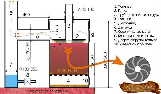 Но для того, чтобы через нижнюю дверку не попадало большое количество кислорода и процесс горения не ускорялся, нужно сделать ее герметичной. Таким образом воздух не сможет проникать во внутреннее пространство из-за плотно закрытого отверстия.