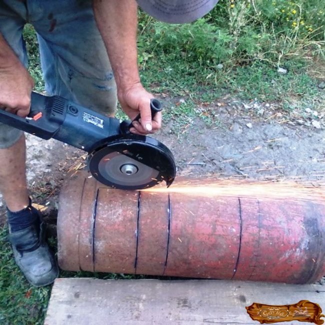 Важно знать, что перед началом изготовления печи корпус необходимо тщательно промыть изнутри, особенно если это пустой газовый баллон. После чего верхнюю часть баллона нужно срезать – эта деталь будет служить крышкой. Если для изготовления используется бочка или труба, крышку необходимо изготовить отдельно по индивидуальным параметрам.