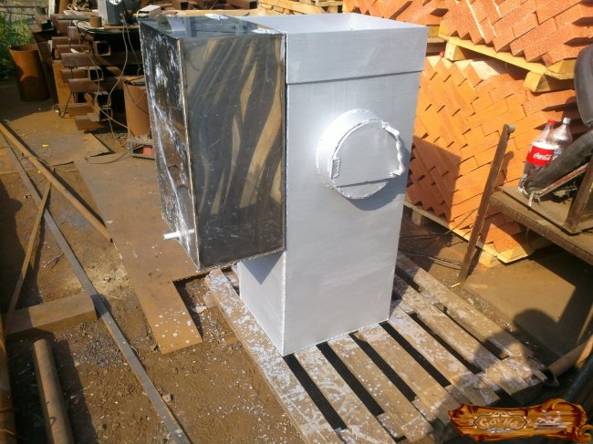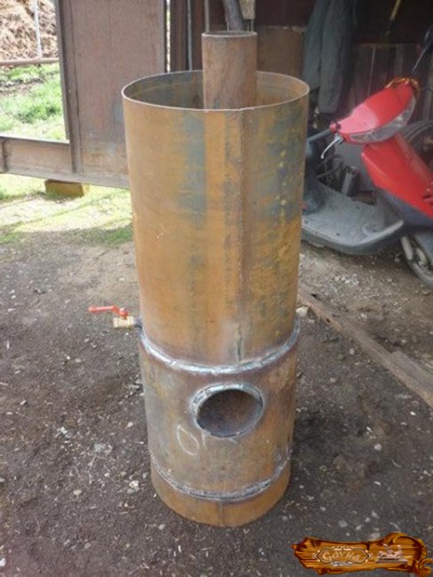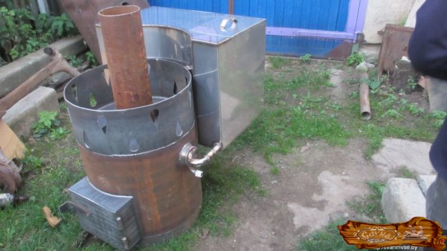 Обратите внимание, что топливный отсек, дымоходная труба и котел желательно изготовить не из черного металла, а из нержавейки. Хотя это связано с некоторыми сложностями, так как для их сварки потребуются электроды из той же нержавейки или особая проволока для сварки.