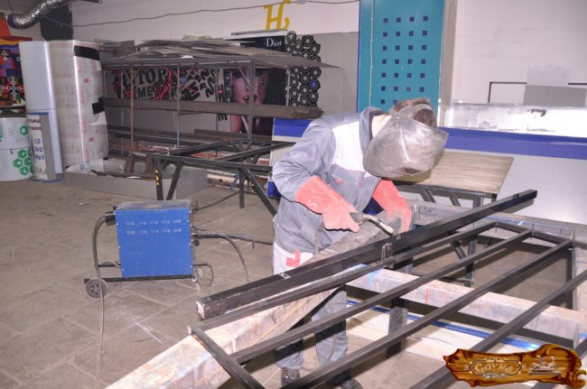 Посредством сварки прикрепляется фасад и в завершении навешиваются дверцы – они, как правило, либо сделаны самостоятельно, либо приобретены в специализированном магазине.