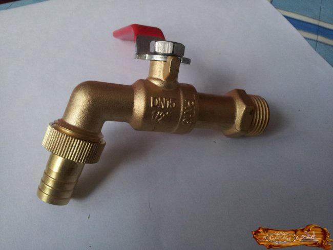 небольшая часть трубы водопровода с резьбой, диаметр 1/2-3/4 дюйма, длина 50-80 мм и водопроводный кран с резьбой внутри такой же по диаметру;