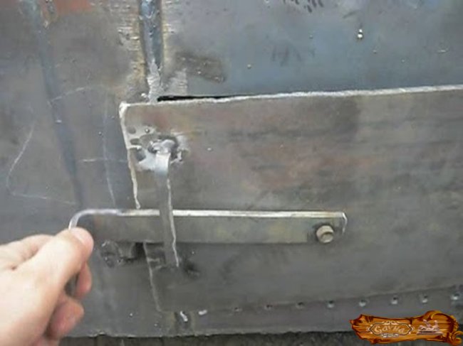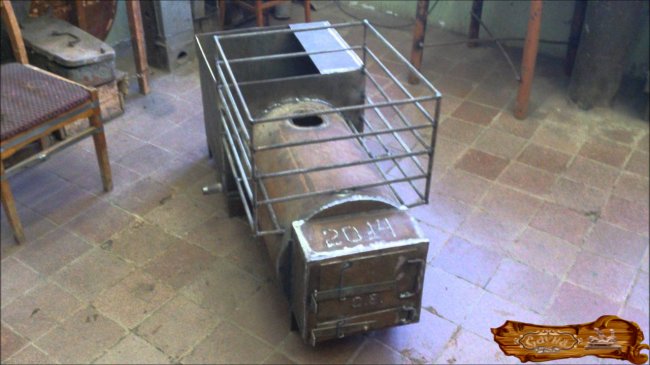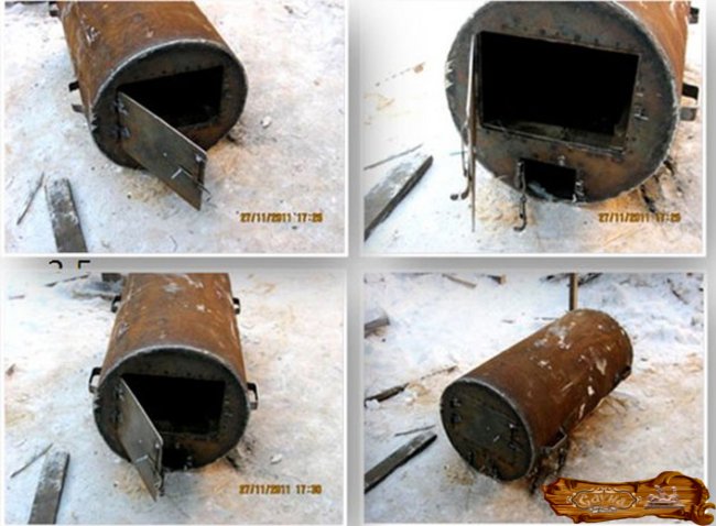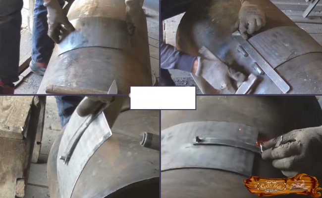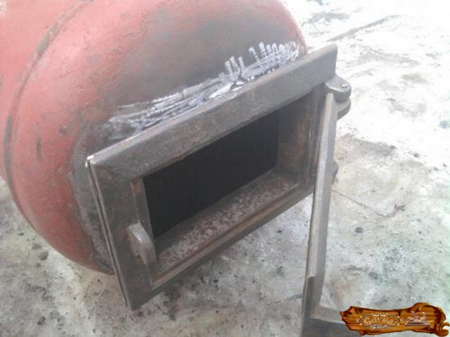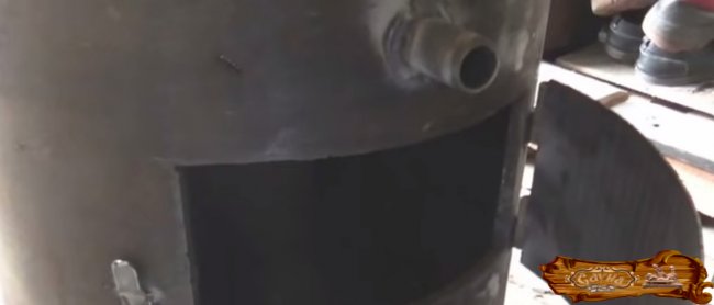 Привариваются петли для установки дверей к корпусу. Проверьте, не имеет ли бак протечек, заполнив его водой. Далее нужно провести первую пробную топку.