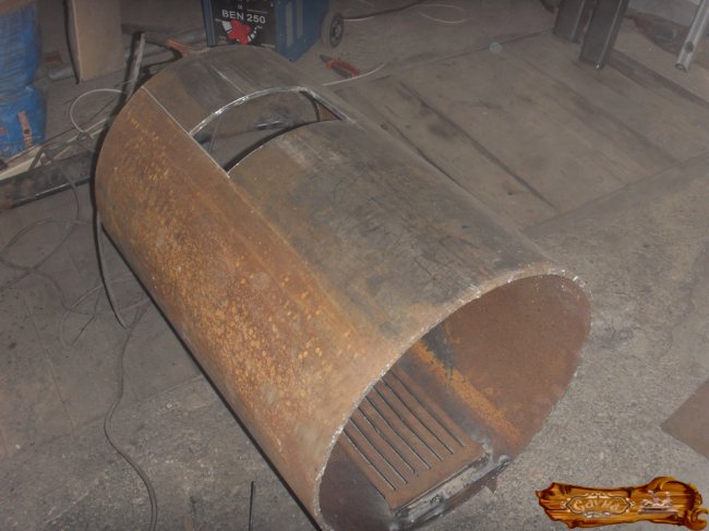 Вырезание топки с помощью болгарки – часть трубы необходимого формата (в строгом соответствии со схемой). Как правило, по длине данная труба будет от 0,7 до 0,9 м.