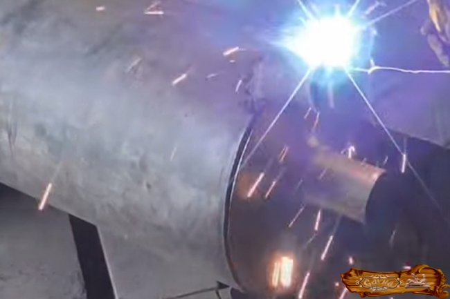 К основанию топливного бака нужно с помощью сварочного аппарата прикрепить базовую трубу на 20 см выше поддувала.