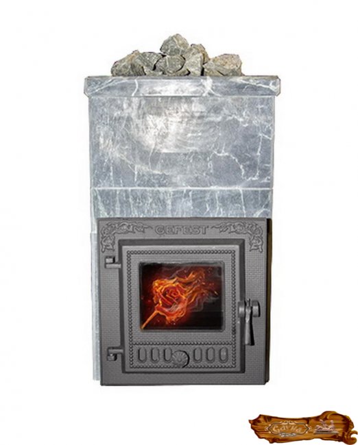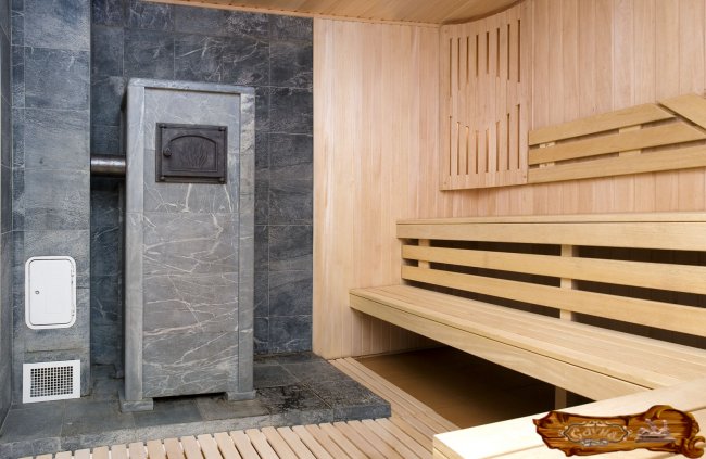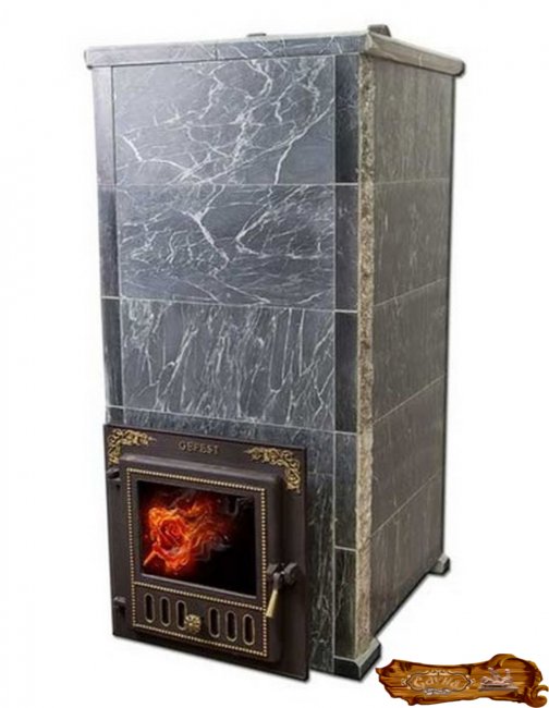 Положительные характеристики чугуна – отсутствие токсичности (вредные составляющие есть в нержавейке и стали). Обрамление в талькохлорите не позволяет возникать слишком горячему пару. Материал характеризуется высокой теплопроводностью. Прогрев парной будет обеспечен максимально быстро.