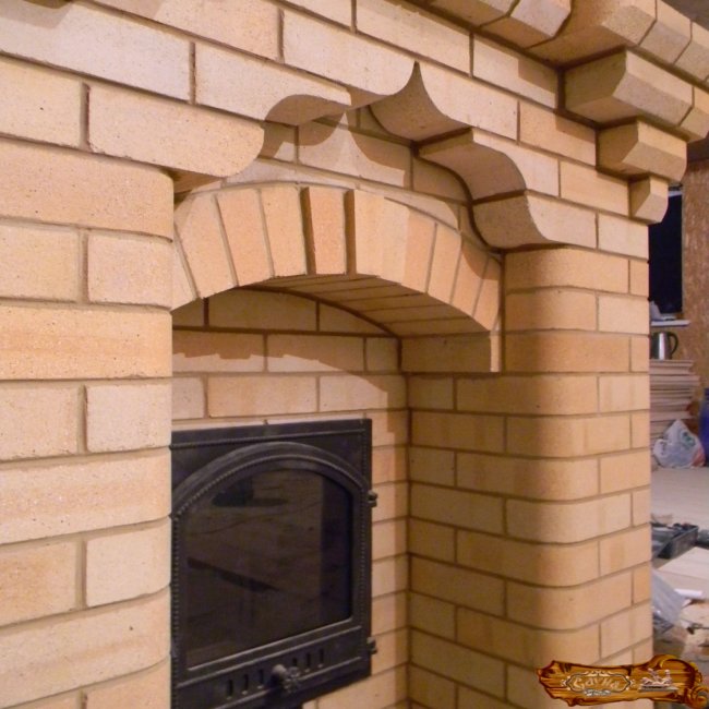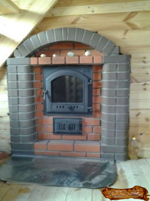 Для подключения моделей в обрамлении талькохлоритом монтируют дымоход и крепкий фундамент. Вариации внешнего вида отделки может регулировать сам владелец. Обычно печки обкладывают кирпичом, и они приобретают внешний вид русской печки.