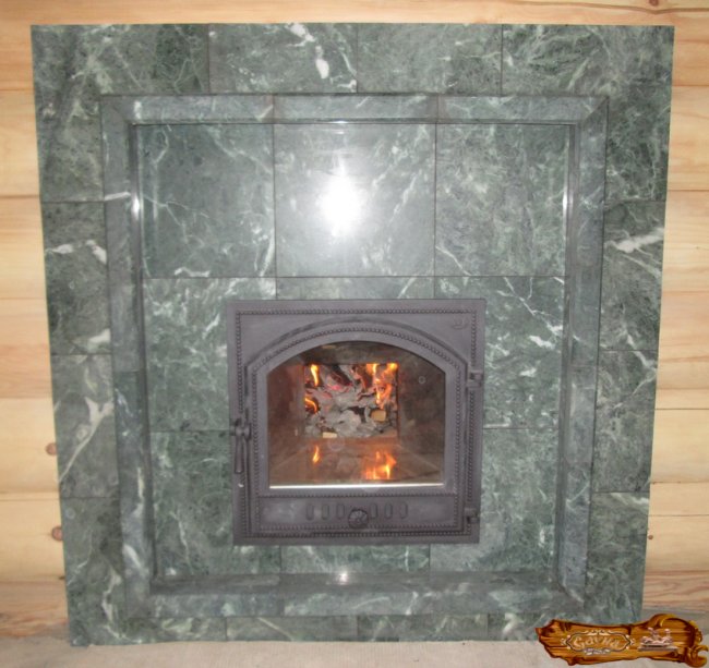 Отделка талькохлоритом приукрашивает внешний вид печки, обладает рядом лечебных качеств. Считается, что данный материал способствует улучшению состояния иммунитета.