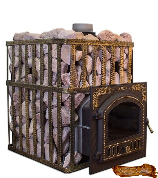 Ассортимент печей «Гефест» продемонстрирован на рынке в нескольких видах. Например, популярны агрегаты из чугуна для бань 45 м. Основное отличие таких печек – компактность. Устройства снабжают выносным порталом небольшой длины. Приличная толщина стен печки позволяет обеспечить сохранность тепла.