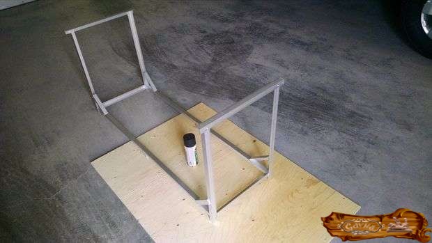 Теперь сваривают две длинные трубы и короткие, чтобы получилось основание. Посередине наваривается еще один длинный отрезок и поперек ему два коротких.