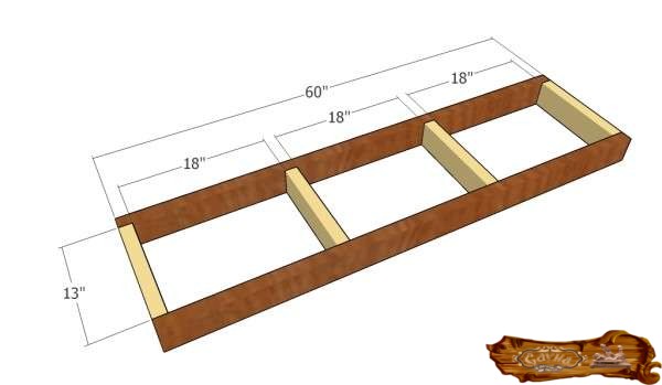 Две боковины соединяются между собой поперечными досками, ширина которых подбирается по желанию мастера.