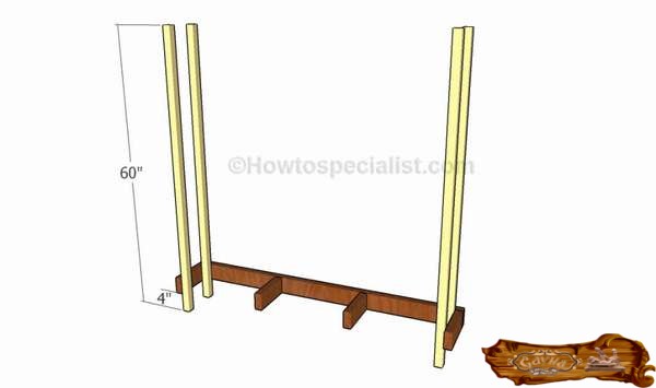 Сначала собирается рама, для которой выпиливают 2 доски одинаковой длины и еще 4 чуть меньшего размера. В данном случае можно учесть размеры свободной площади в помещении. Все они соединяются в прямоугольник саморезами. Две другие прикручивают в середине рамы, поскольку будут играть роль дна, удерживающего дрова.