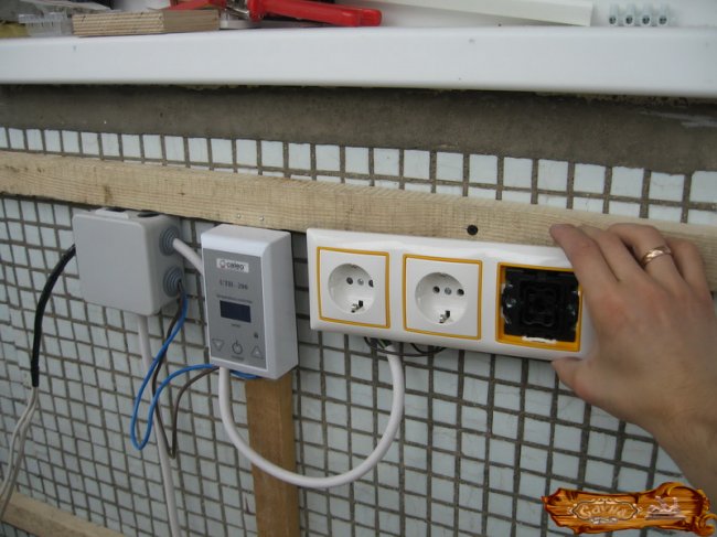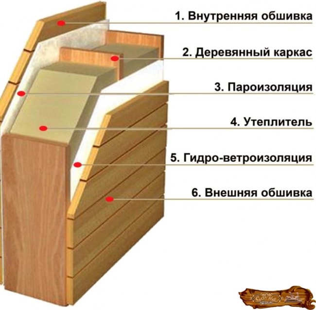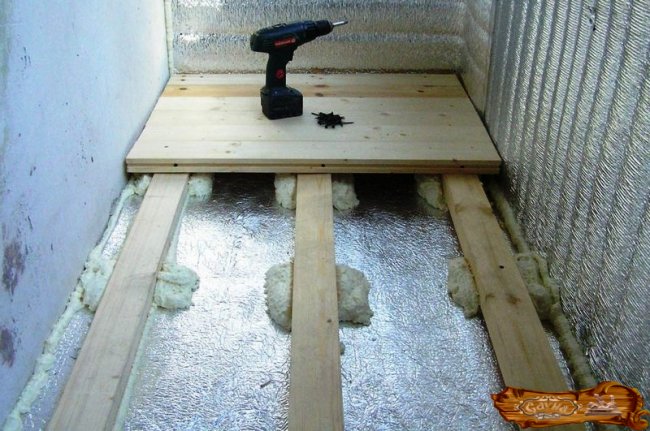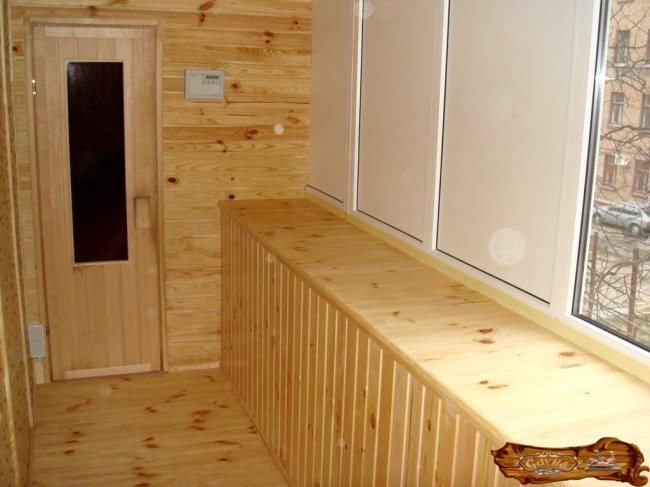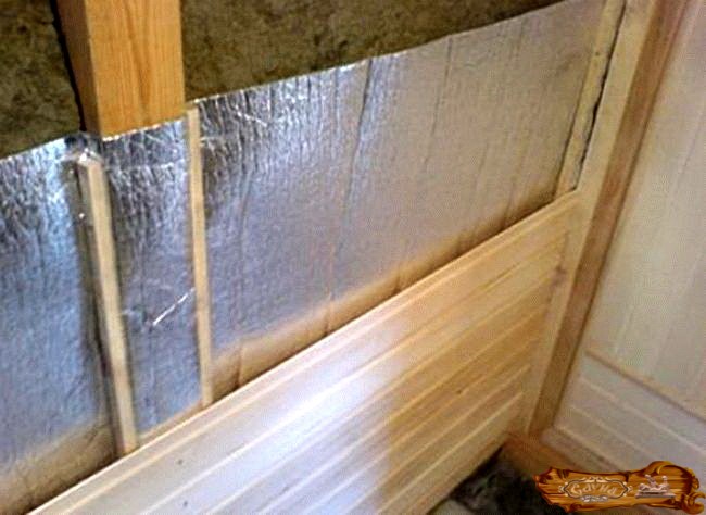 Перед обработкой стен нужно произвести установку проводки от электросчетчика в сауну. Стоит использовать специальный теплоустойчивый кабель. Для экономии площади балкона снаружи его следует утеплить пенопластом. Внутри вертикально ставятся брусья 50х50 мм на расстоянии примерно в полметра. Пространство между ними для изоляции наполняется минеральной ватой. Затем стены покрываются фольгоизолом, на который в последствии прибиваются рейки. Эта конструкция в конце обшивается вагонкой или другим материалом из древесины. Отлично подойдут для отделки доски с усушкой менее 10%.