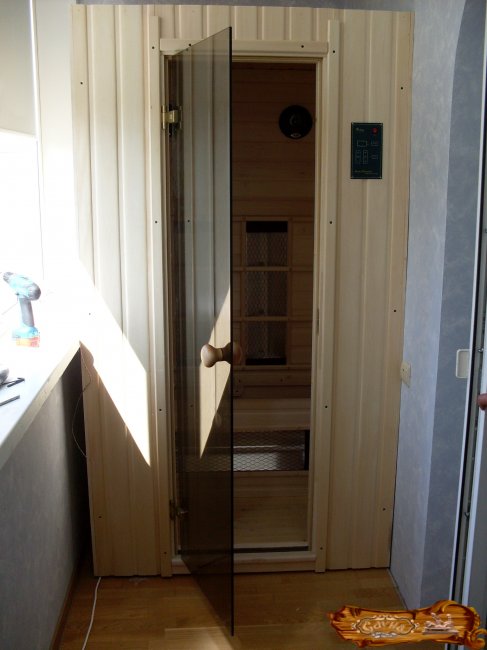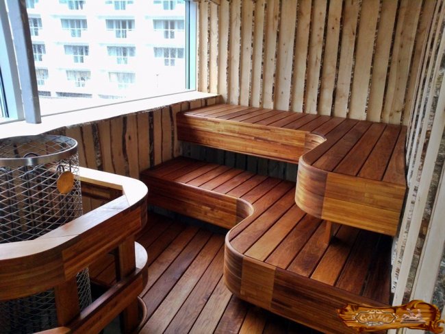 Отличия русской парной и финской сауны Достоинства и преимущества компактной парной Как построить самим мини баню на балконе Необходимые материалы Утепление сауны Монтаж отопительных элементов Освещение Отделочные работы внутри сауны Декорация сауны Заключение Хорошо, если у вас есть дачный участок и баня на нем. А как быть, если вы живете в квартире? Ведь так хочется расслабиться и поднабраться сил после тяжелого рабочего дня в собственной сауне. Выход есть – оборудовать ее на балконе или лоджии. Если вы обладатель большого балкона, то можно оборудовать банное помещение прямо здесь, конечно, соблюдя все требования закона при осуществлении перепланировки. В собственной сауне вы всегда будете спокойны и уверены, что гигиена соблюдена, а помещение чисто, да и не придется тратить время на дорогу и оплату этого недешевого удовольствия в других заведениях. Конечно, можно приобрести готовую мини сауну, но на это придется значительно потратиться. Проще оборудовать конструкцию мини парилки на балконе своими руками. Обычно размеры компактной сауны достигают 80 см в ширину и 2 м в высоту. Если есть строительные навыки и желание сделать парилку своими руками – воспользуйтесь подробными инструкциями в интернете и подручными средствами или наймите для профессиональной консультации грамотного мастера. Отличия русской парной и финской сауны Перед тем как возводить конструкцию на балконе, определитесь, какой именно она будет. Например, если внутреннее устройство у русской парной и финской сауны почти одинаковые, то система прогрева и отопления совсем разные. В русской бане это классические дрова и камни, на которые подается вода, в результате чего и получается влажный пар. И, конечно, обязательно наличие веника, при помощи которого будет очищаться тело. А вот более современные финские сауны обычно оснащены электропечью и дают сухой пар. Конечно, более простым и практичным вариантом является сухая парилка, когда не нужно занимать дополнительное место под дрова и чистить золу в печке и на полу, а нагретые электрическим камином камни повысят температуру в помещении буквально за несколько минут. Но у русской парной есть своя «душа», да и кто не хочет попариться с ароматным веничком. Выбор типа сауны – только за вами. Достоинства и преимущества компактной парной Идея сауны на балконе идеальна и довольно легко осуществима. Отзывы о такой сауне в большинстве своем положительные, а преимуществ и достоинств у конструкции парилки на балконе предостаточно: минимальные финансовые затраты; эффект настоящей сауны; небольшие размеры; не требуется использование дров; быстрый нагрев помещения; личная гигиена и безопасность (собственная парилка защитит от заболеваний, которые могут передаваться в общественных местах); удобство (не нужно выходить их дома, можно париться в любое время дня и ночи). Как построить самим мини баню на балконе Так как подвод и вывод воды с балкона наладить весьма проблематично и накладно, стоит ограничиться парными процедурами в мини сауне, а водные продолжить в ванной или душе. Перед началом строительных работ желательно укрепить конструкцию балкона подпорками, а затем позаботиться об утеплении помещения изнутри и снаружи. Лучше, чтобы сауна примыкала к стенам здания, а не выходила хотя бы одной стороной на улицу. В