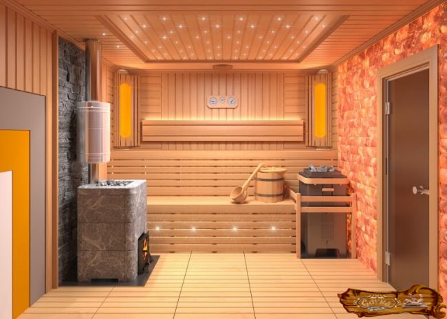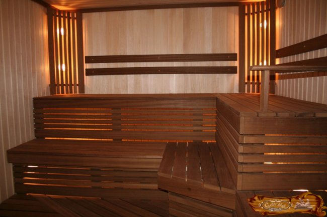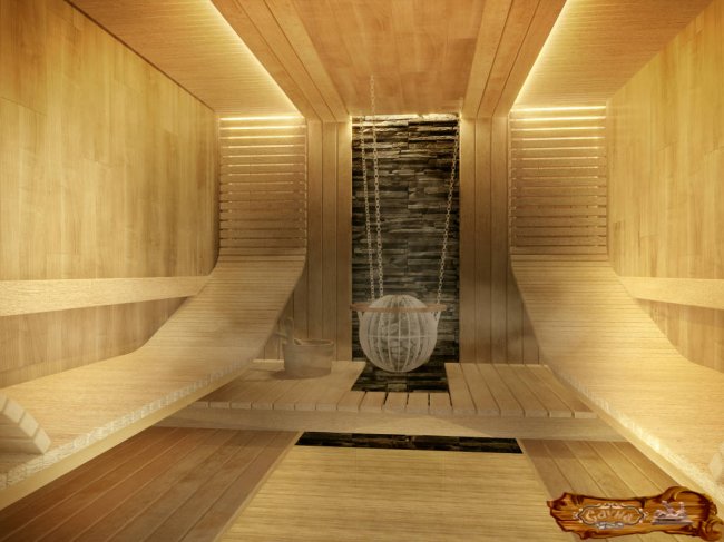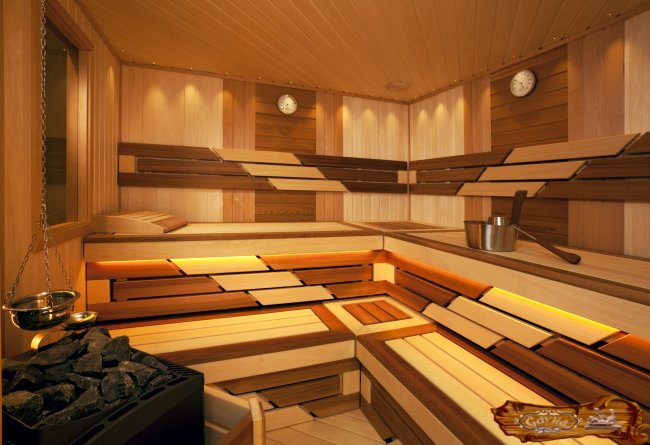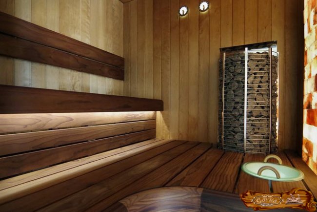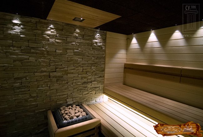 Организация подсветки придаст изысканные черты внутреннему интерьеру сауны.