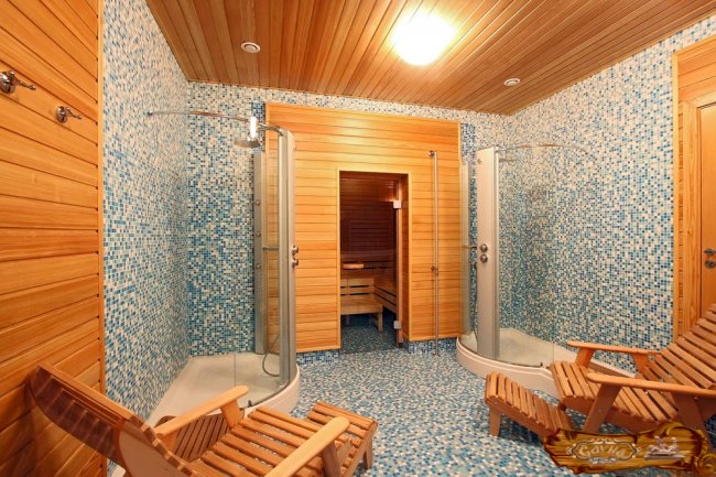 Сухой пар сауны разогревается до 100-110 градусов Цельсия, находиться там долгое время противопоказано, поэтому между заходами в парилку необходимы длинные перерывы по 25 – 30 минут. Для выполнения всех рекомендаций по принятию сауны требуется наличие следующих помещений: парилка, душевая или бассейн и комната для отдыха. Каждое из этих помещений имеет свои особенности отделки. Размер этих помещений тоже может варьироваться. Расположение сауны в виде отдельного строения или кабины в городской квартире влияет на выбор оформления.