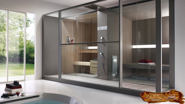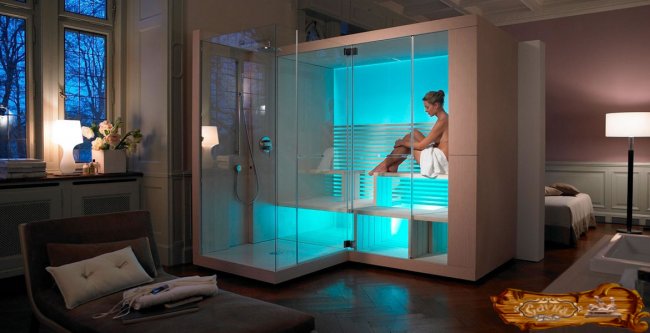 Оформление и выбор отделочных материалов зависит от общего дизайна сауны. Небольшие парные стоит стилизовать в одном ключе. Сегодня сухая парная становится необходимостью в интенсивном ритме городской жизни. Современные технологии позволяют установить сауну в городской квартире. Она становится частью небольшого пространства с помощью стеклянных перегородок и элементов общего дизайна жилой комнаты в стиле минимализма.