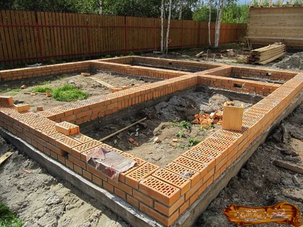 Фундамент собирают только из красного кирпича. Белый силикатный материал неустойчив к взаимодействию с водой, поэтому быстро разрушится. Швы между кирпичами необходимо обработать гидроизоляционной мастикой – цемент обладает хорошей водопропускной способностью.