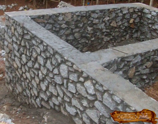Каменное основание возводят из речного камня и цемента. Другое название такого типа фундамента – бутобетонная кладка. Этот тип фундамента прост в монтаже и обладает низкой себестоимостью. Камни следует выбирать плоские и одинаковые по размеру. Слои кладки заливают бетоном.