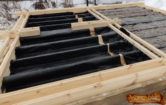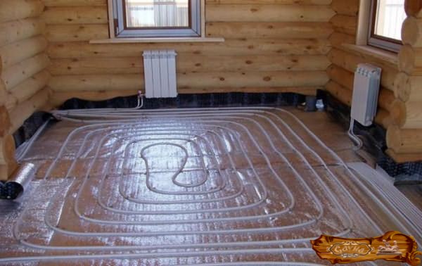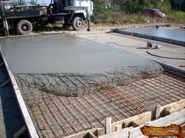 Фундамент является черновым полом, поэтому его необходимо утеплить. Монолитная стяжка позволяет устроить водяной отапливаемый пол. Необходимо помнить о гидроизоляции и устройстве утепляющей конструкции. В противном случае помещение будет холодным. «Ковер» из изоляционных материалов можно устраивать в качестве подложки под цементную стяжку.