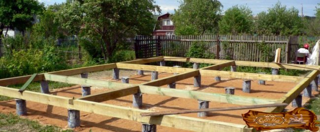 Если нет возможности залить ростверк бетоном, то мастера рекомендуют изготовить такую конструкцию из бруса.