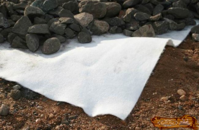 Слой из песка и щебня необходимо защитить слоем геотекстиля. Этот материал можно стелить межу слоями грунта, загибая края наверх. Текстиль защитит подушку от заиливания и размыва. Материал хорошо пропускает через себя влагу, а благодаря составу долго не подвергается разрушению. Геотекстиль производят в специальных рулонах, что делает его простым в эксплуатации.