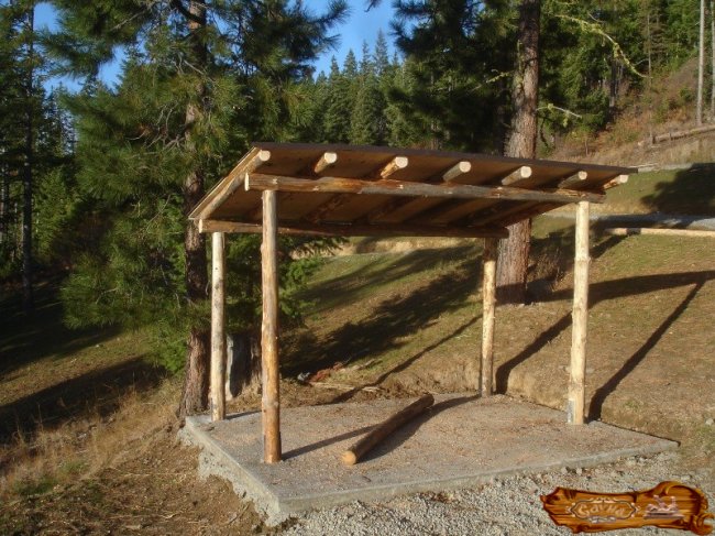 Крыша должна быть больше, чем дровник. Выступ должен быть около 25 см.