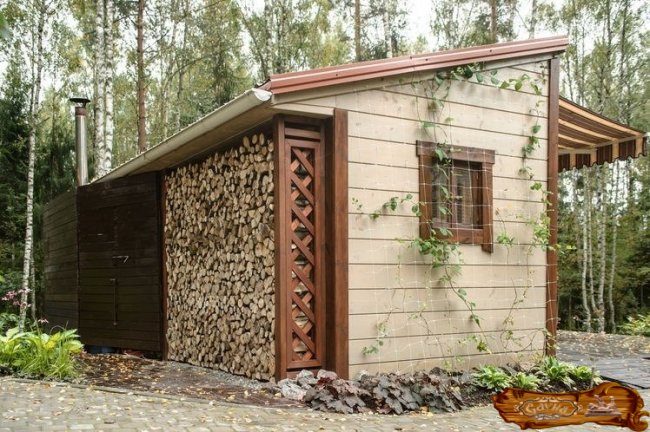 Дровник расположенный с севера утеплит северную стену дома. Дом закроет дрова от нежелательного света.