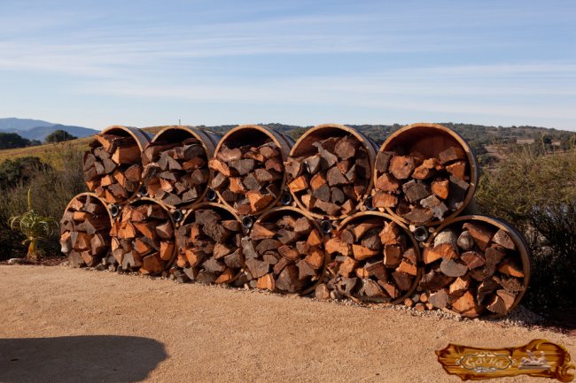 Рассмотрим еще несколько вариантов, которые будут смотреться оригинально и позволят использовать подручные материалы. Дровник из бочек можно сделать очень быстро. Сделайте из бочек кольца, выбив дно. Установите бочки друг на друга и закрепите. Дрова складывайте в бочки, но не забывайте, что дровам нужен воздух, поэтому не стоит вплотную наполнять бочки.
