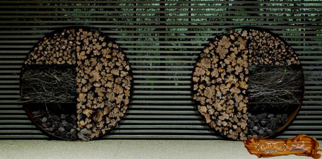 Для строительства и сооружения оригинальных дровников используют также бочки, бывшие загоны для кроликов и даже поддоны и кольца для колодцев. Такие варианты не требуют создания чертежа и отличаются не только внешней оригинальностью, но и легкостью создания конструкции.