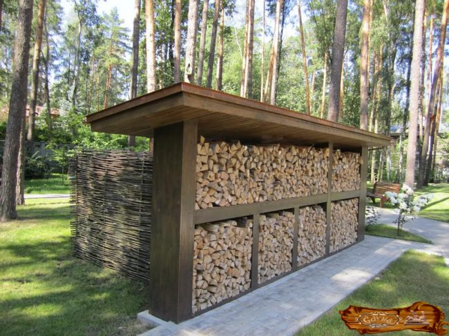 Потратьте немного сил и времени, чтобы создать удобный вам дровник и защитите запасы дров от непогоды и сырости. Правильное хранение не только сохранит дрова, но и сделает их более пригодными для использования. Дровник может стать не только удобной и нужной постройкой на вашем участке, но и стать элементом украшения. Дровники украшают резными элементами, растениями, вьюнками. Рядом с дровником можно расположить лавочку. Желательно выполнить дровник в одном стиле с другими строениями. Все зависит от вашего желания и фантазии.