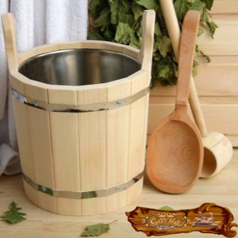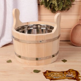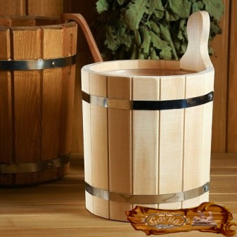 Шайка внешне очень напоминает обычное ведро. Разница только в габаритах. Так, аксессуар для бани ниже, но шире, чем простое ведерко. По бокам есть ручки, одна или две. Конструкция позволяет носить горячую воду без риска обжечься.