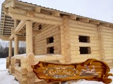 Некоторые владельцы бань выбрали именно этот материал за его внешние данные и довольно недорогие цены. Низкая себестоимость бревна позволяет подойти к проектированию бани с размахом.