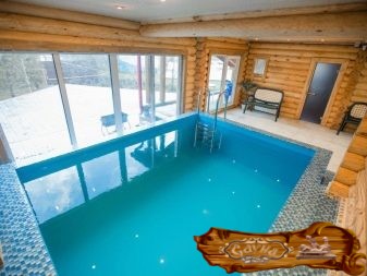 Баня с бассейном внутри станет прекрасным местом для отдыха в любое время года. Чтобы отдых был комфортным и приятным, следует позаботиться об установке качественных систем гидроизоляции, очистки, отопления. Форма бассейна может быть любой: круглой, овальной, прямоугольной или фигурной.